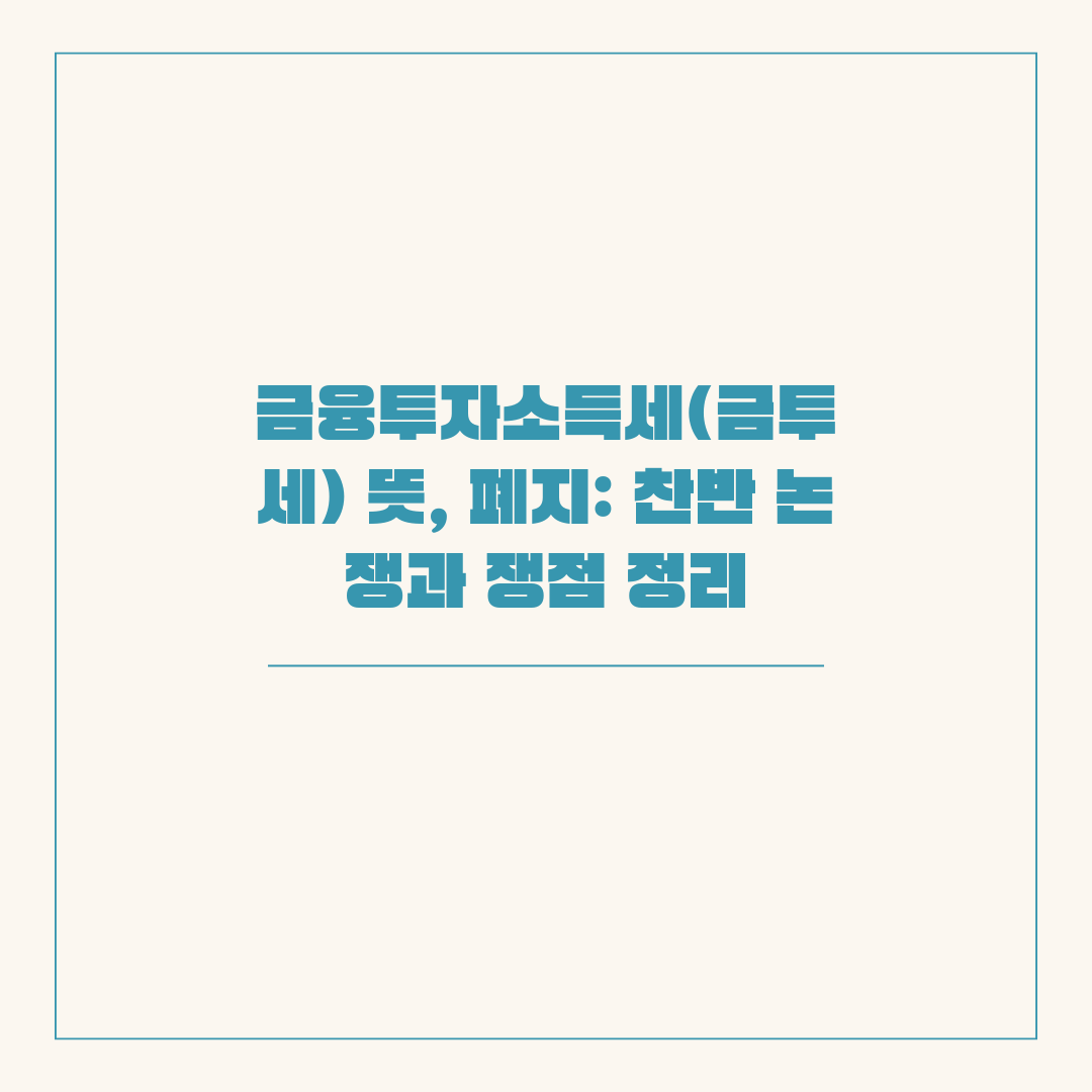 - 세입 확대: 금투세는 정부 재정 확보에 기여할 수 있는 새로운 세원 확보 방안이라는 주장입니다.