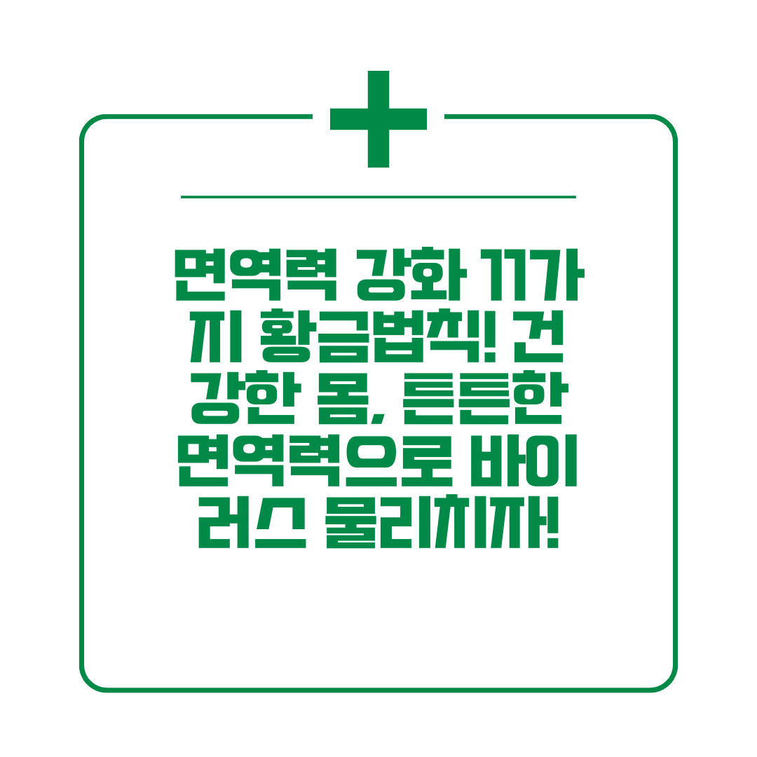 면역력은 우리 몸을 건강하게 유지하는 데 매우 중요한 역할을 합니다. 위에서 소개한 면역력 강화 방법들을 꾸준히 실천하여 튼튼한 면역력을 가지고 건강한 삶을 살아가시길 바랍니다.
