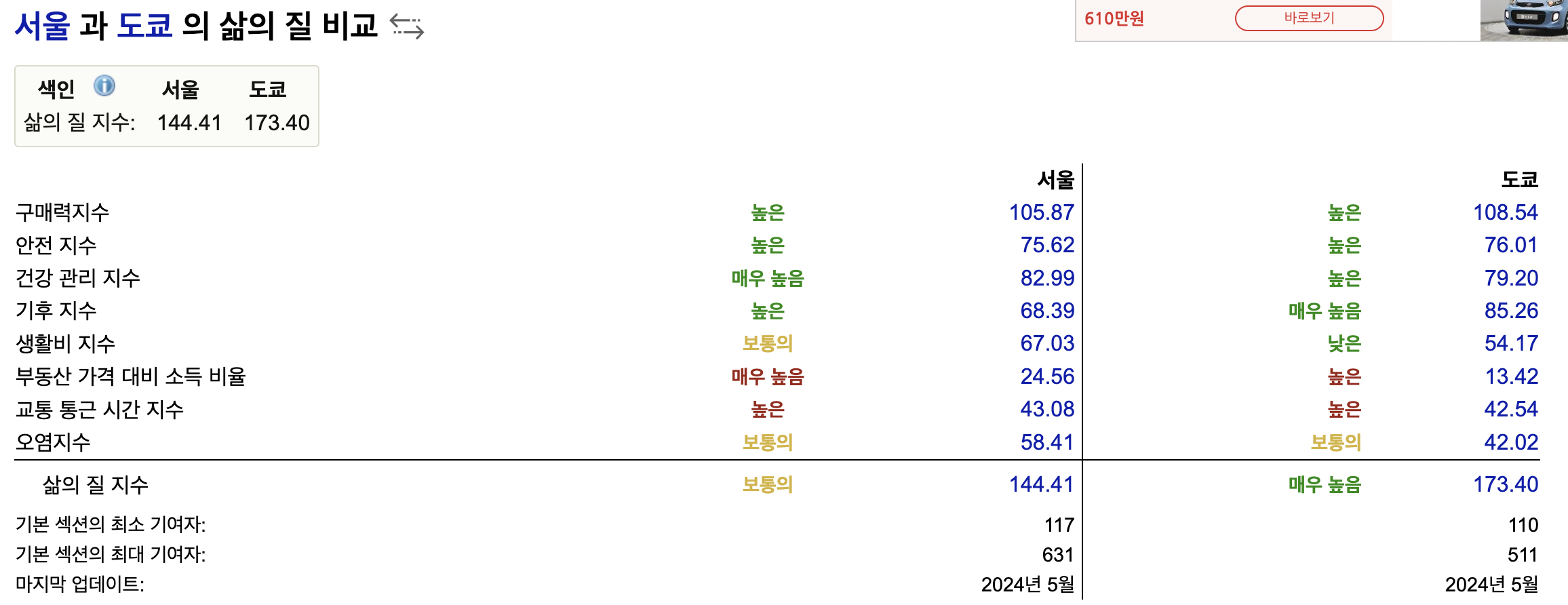 - 서울: 144.41 (보통의)
