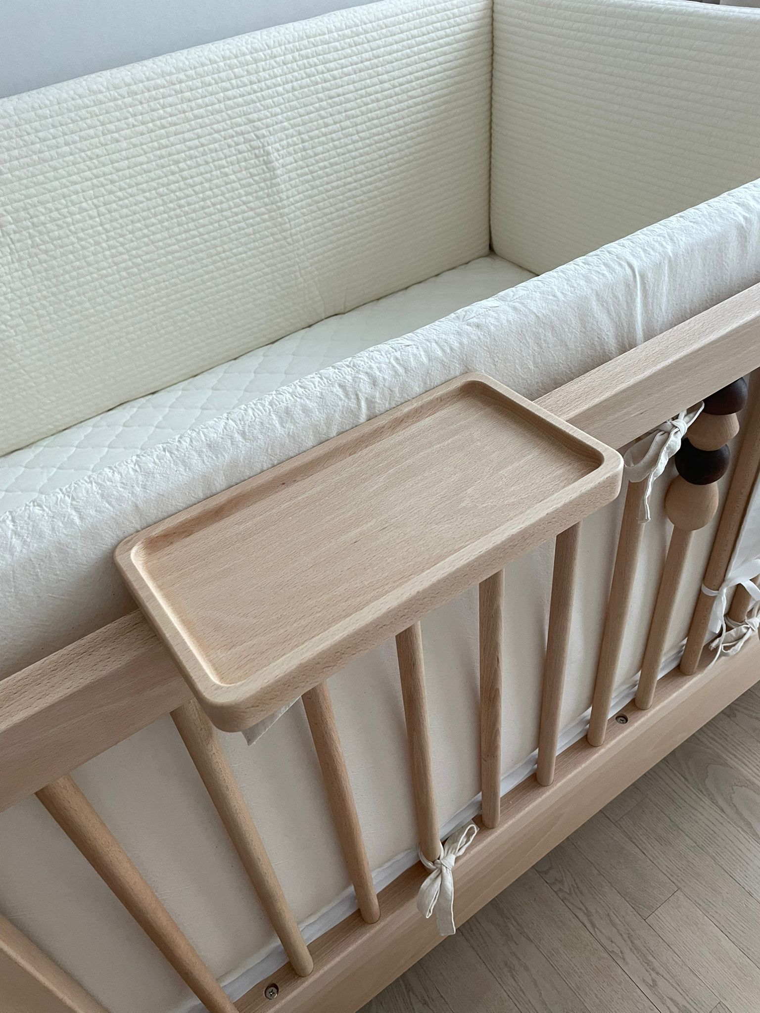 교구가 센스 있어요 - 침대에 달린 원목 교구가 정말 예쁘더라고요. 모빌이나 선반 같은 옵션들도 탐나더라고요.