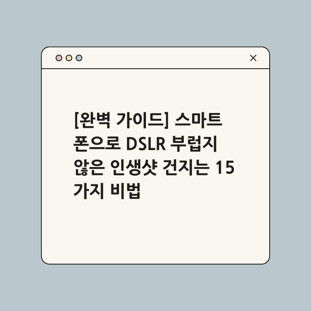 스마트폰 카메라의 성능이 아무리 좋아져도, 결국 가장 중요한 것은 사진을 찍는 사람의 눈과 감각입니다. 이 팁들을 기억하고 꾸준히 연습한다면, 여러분도 곧 스마트폰으로 프로급 사진을 찍을 수 있을 것입니다.