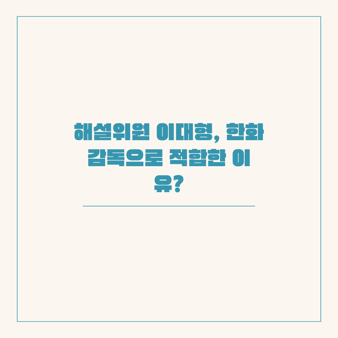 해설위원 이대형은 야구에 대한 깊은 이해, 전략적 사고, 강력한 리더십, 젊은 선수들과의 소통 능력, 긍정적이고 열정적인 팀 분위기 조성 능력 등 감독으로서 필요한 모든 자질을 갖추고 있습니다. 그의 능력과 경험은 한화 이글스에게 새로운 변화를 가져올 것이며, 젊은 선수들의 성장을 이끌고 팀의 승리를 이끄는 데 중요한 역할을 할 것으로