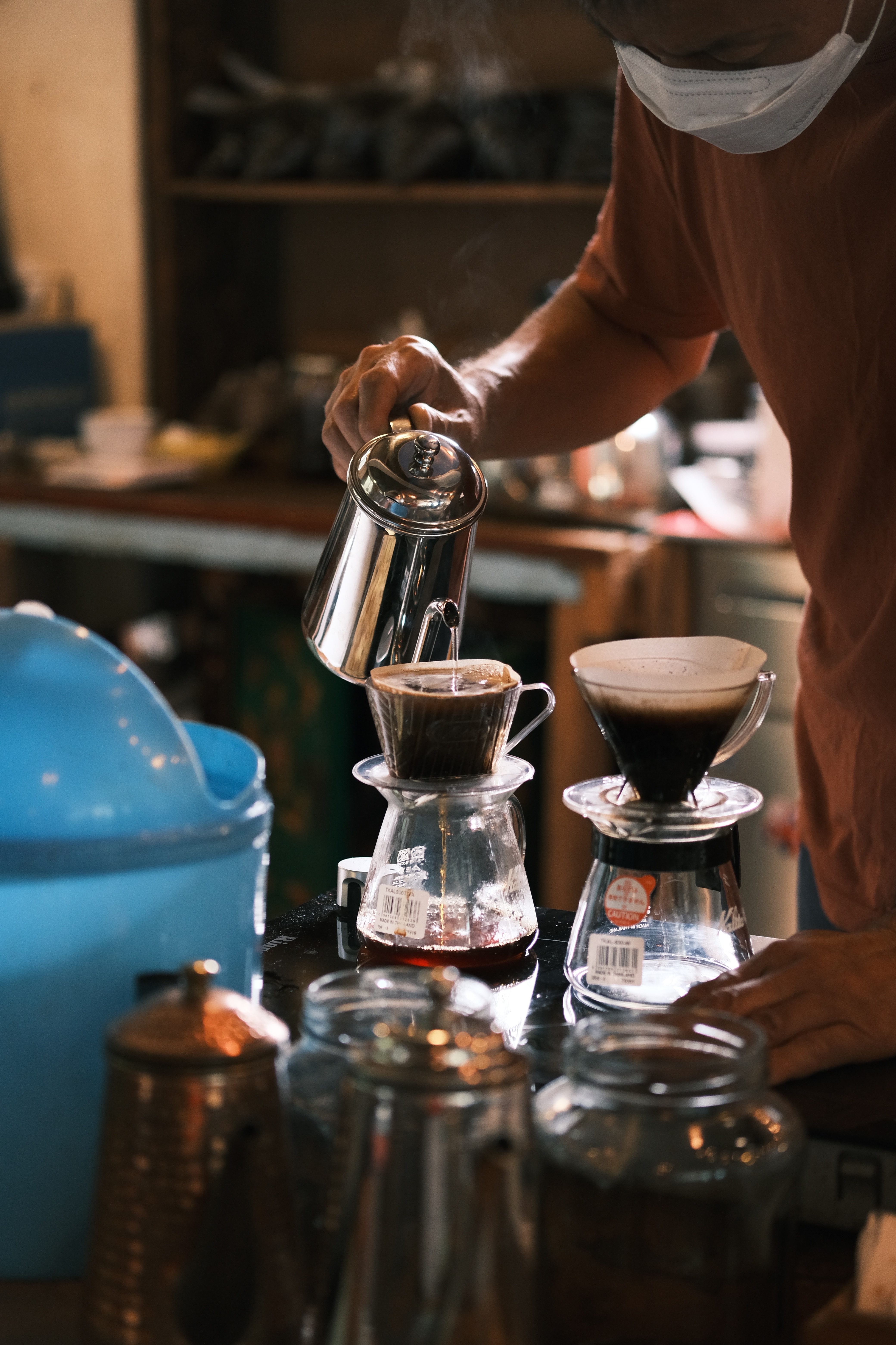 - 사람의 기술: 사람의 기술에 따라 커피의 맛이 달라집니다. 커피를 내리는 속도와 방향, 물의 양과 흐름, 원두의 배치와 뜸 등에 따라 커피의 맛이 달라집니다. 커피를 내리는 기술은 연습과 경험을 통해 향상시킬 수 있습니다.