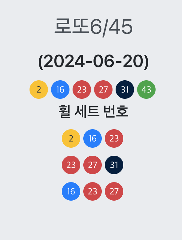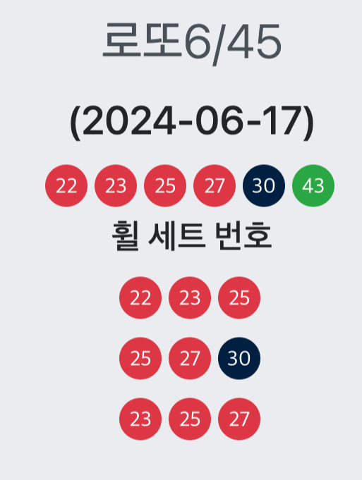 공개 당시의 높은 트래픽으로 인해 사이트 접속이 어려웠던 분들을 위해, 제가 예측한 로또 번호 샘플을 몇 개 공유하려고 합니다. 이 예측 번호들은 알고리즘을 통해 생성된 것이며, 이번 주의 운을 시험해 보는 데 사용해 보세요!